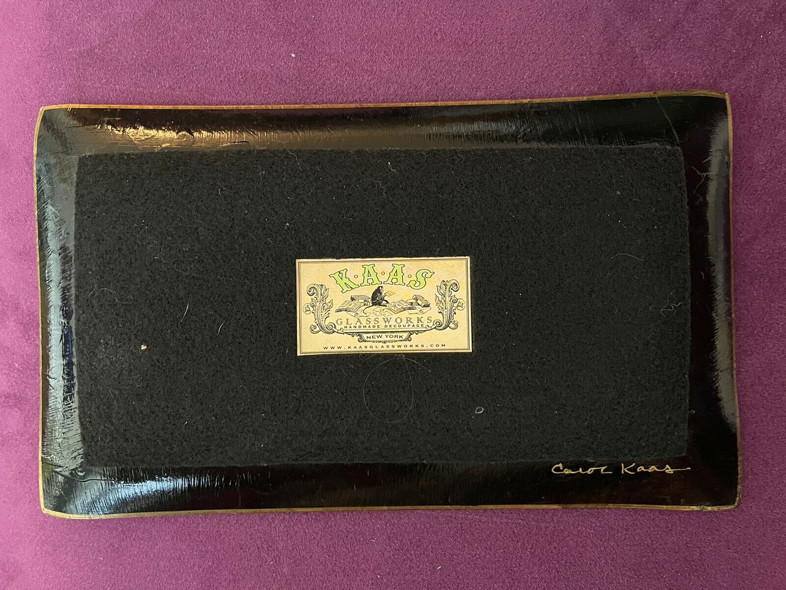 Kaas Glassworks NY Decoupage Trinket Tray Dish Walrus Handmade Signed 10” x 5”