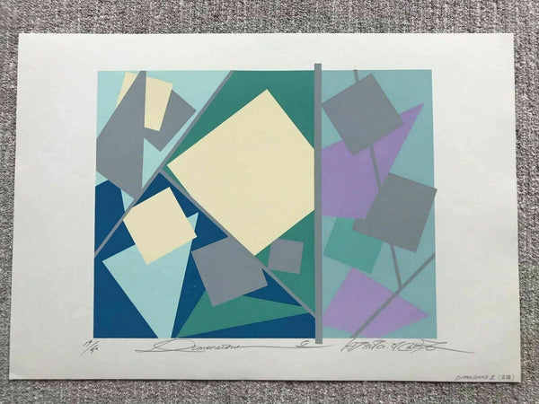 This is a limited edition serigraph by internationally acclaimed artist Atsuko Okamoto, known for her colorful abstractions. There is an emphasis on color, composition, and emotion and they have a happy exuberance which pay homage to masters Wassily Kandinsky, Piet Mondrian, Joan Miro and Paul Klee.  This would be a wonderful addition to your Memphis-inspired, Mid-century Modern or Contemporary decor!!