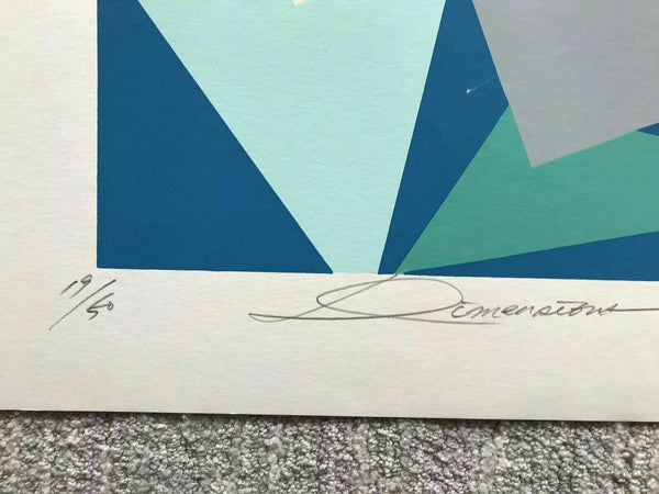 This work is signed, titled "Dimensions" and is a 19/50 edition. Measures a large 31" x 21" overall. Printed on heavy arches rag paper and ready for framing.